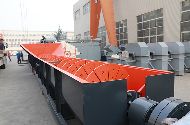 物料由給料箱均勻給入,連續(xù)給主槽體中注入一定量的水,傳動(dòng)部帶動(dòng)螺旋軸以一定的速度旋轉(zhuǎn),迫使物料在槽體中翻轉(zhuǎn)滾動(dòng)并向排料口運(yùn)動(dòng),細(xì)粒級(jí)物料和雜質(zhì)隨溢流水經(jīng)溢流堰排出,粗粒度物料由排料口排出,從而實(shí)現(xiàn)物料的洗選、分級(jí)、除雜和脫水。