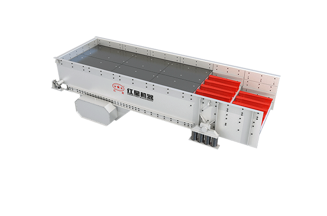 振動(dòng)給料機(jī)主要由機(jī)身、彈簧、彈簧底座、激振器、振動(dòng)電機(jī)、篩條組成。電動(dòng)機(jī)經(jīng)三角帶使激振器偏心塊產(chǎn)生高速旋轉(zhuǎn);運(yùn)轉(zhuǎn)的偏心塊產(chǎn)生很大的離心力,激發(fā)篩箱產(chǎn)生一定振幅的圓運(yùn)動(dòng),篩上物料在傾斜的篩面上受到篩箱傳給的沖量而產(chǎn)生連續(xù)的拋擲運(yùn)動(dòng),物料與篩面相遇的過(guò)程中使小于篩孔的顆粒透篩,從而實(shí)現(xiàn)分級(jí)。