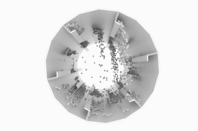 烘干機(jī)的熱源來自燃燒裝置,本烘干機(jī)采用順流式加熱方式。因此需要烘干的物料,從進(jìn)料箱、進(jìn)料溜進(jìn)入筒體,即被螺旋抄板推向后。由于烘干機(jī)傾斜放置,物料一方面在重力和回轉(zhuǎn)作用下流向后端,另一方面物料被抄板反復(fù)抄起,帶至上端再不斷地?fù)P撒下來,使物料在筒內(nèi)形成均勻的幕簾,充分與筒內(nèi)的熱氣流進(jìn)行熱交換,由于物料反復(fù)揚(yáng)撒,所含的水分逐漸被烘干,從而達(dá)到烘干的目的。