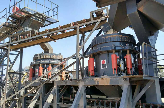 在工作時(shí)通過電動(dòng)機(jī)的旋轉(zhuǎn)帶動(dòng)帶輪或聯(lián)軸器、傳動(dòng)軸和圓錐部在軸心線下使偏心軸做周期性旋擺運(yùn)動(dòng)。在物料從料口進(jìn)入破碎腔后因受到偏心軸和軋臼壁的相互沖擊擠壓、研磨、揉搓從而產(chǎn)生破碎的作用。液壓保險(xiǎn)系統(tǒng)能在機(jī)器發(fā)生過鐵故障或者悶車現(xiàn)象時(shí)通過液壓將支撐套和定錐部排除出故障物,在起到很好的保險(xiǎn)作用的同時(shí)大大的降低了維修率及提高生產(chǎn)效率。